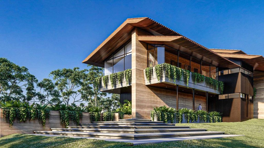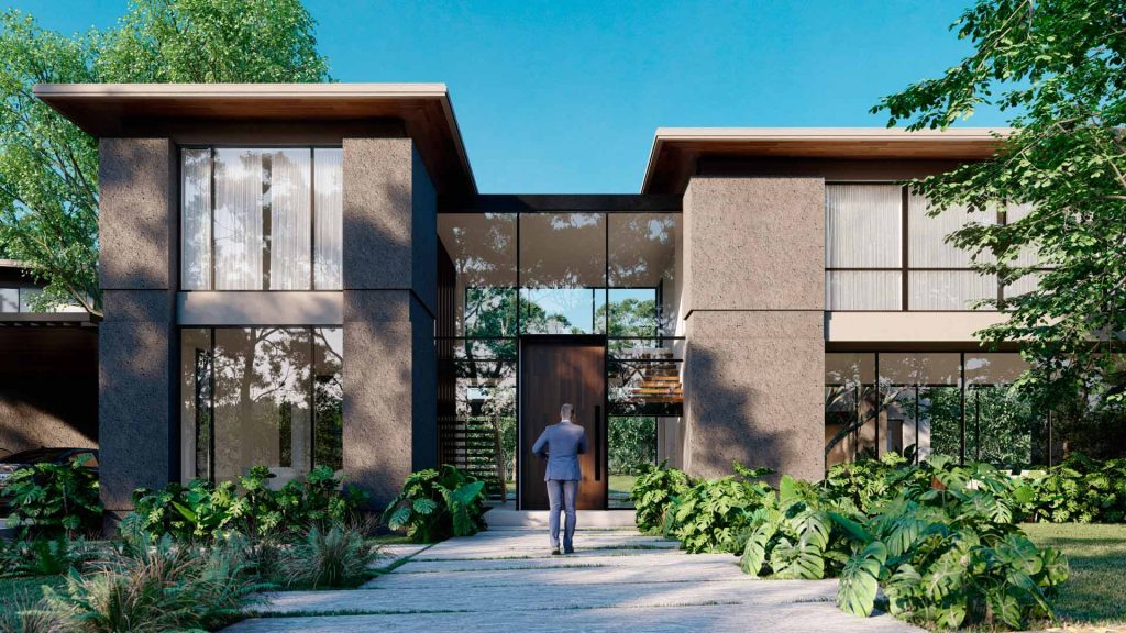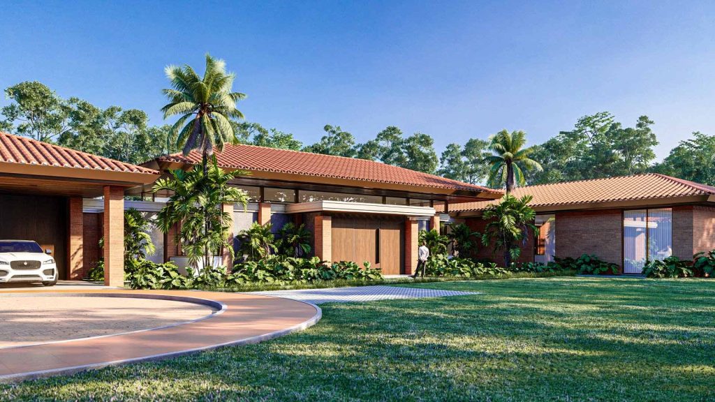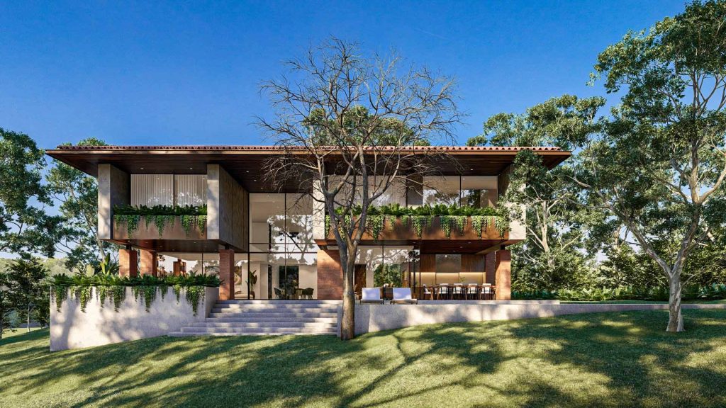 La Casa Guayacán es una residencia unifamiliar de lenguaje contemporáneo que se distingue por la fuerza de su composición volumétrica y su íntima relación con el entorno natural. El proyecto se organiza en dos volúmenes pesados de ladrillo visto, sólidos y sobrios, que se conectan a través de un volumen ligero de vidrio, generando una […]