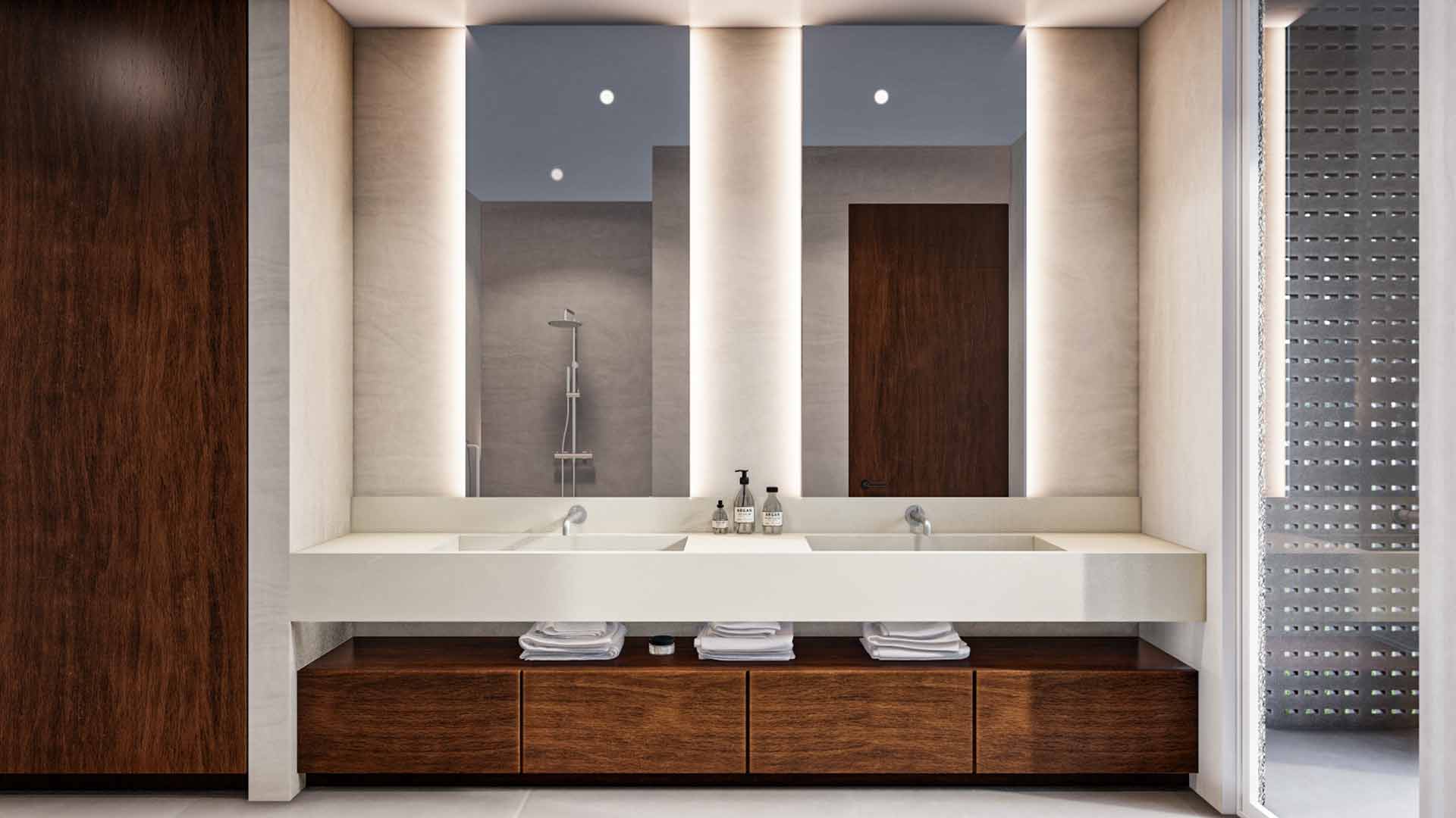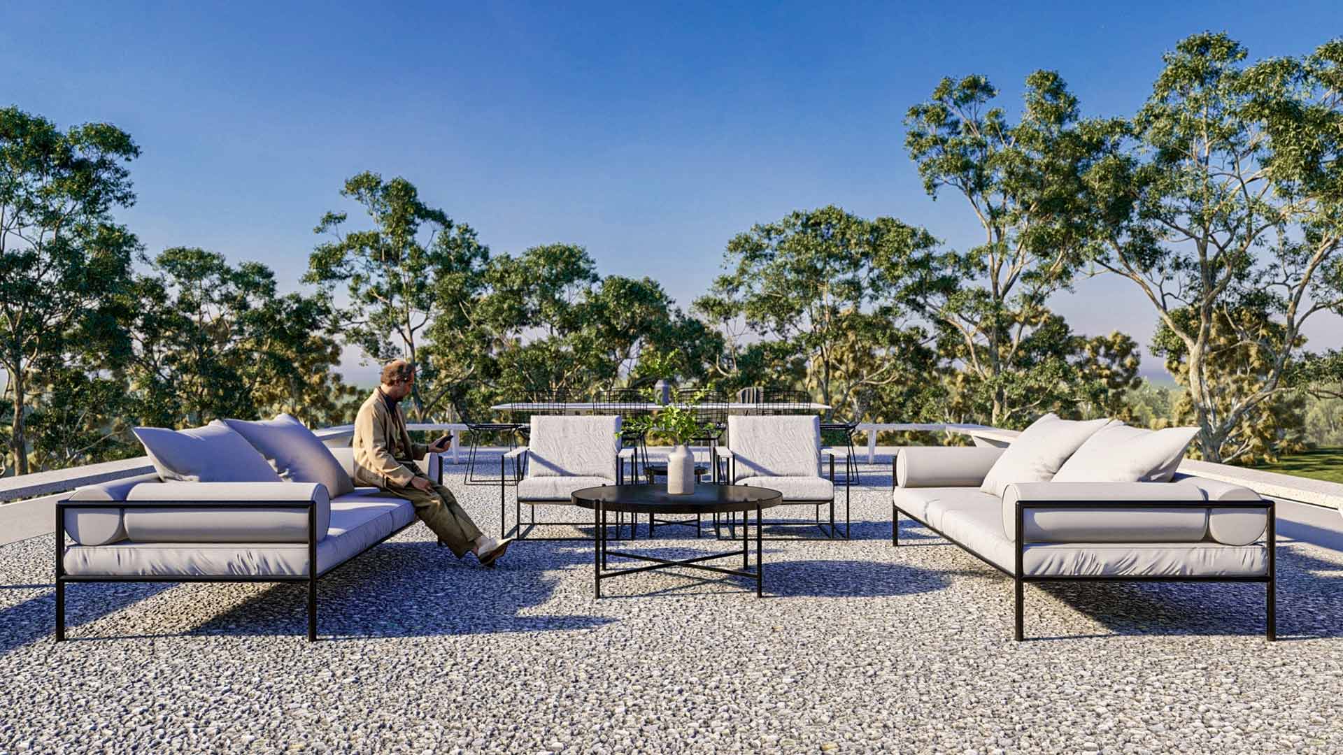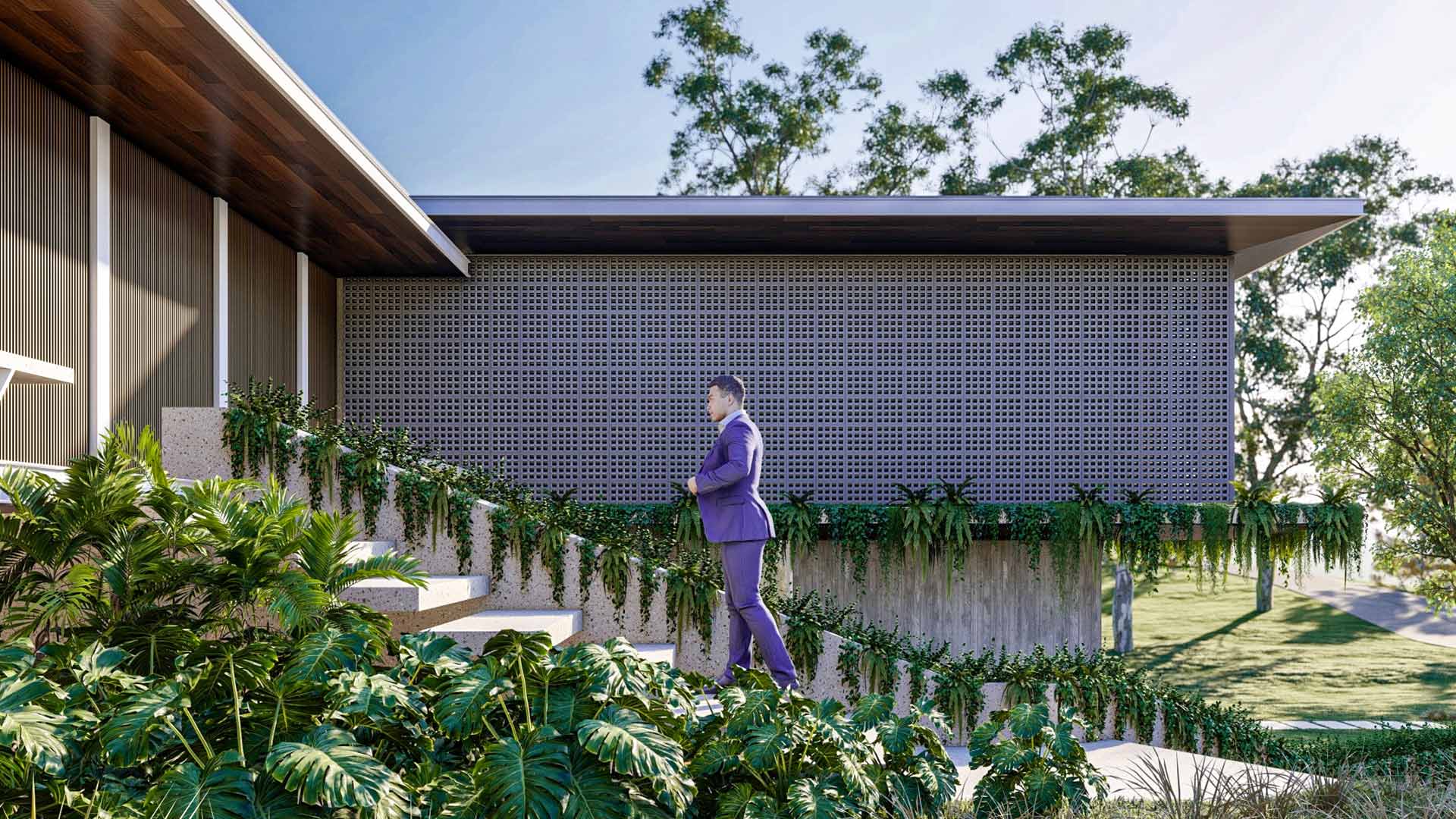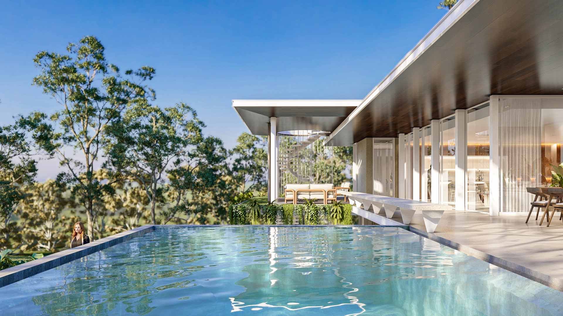 La materialidad apuesta por la paleta blanca y neutra, símbolo de la renovación familiar en su traslado a Santa Cruz, en contraste con la calidez de la madera y el verde intenso de la vegetación circundante. El resultado es un conjunto luminoso, elegante y armónico, que refleja la idea de un nuevo Aurora a través de la arquitectura.
