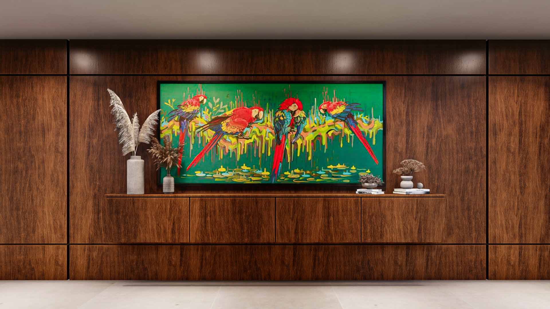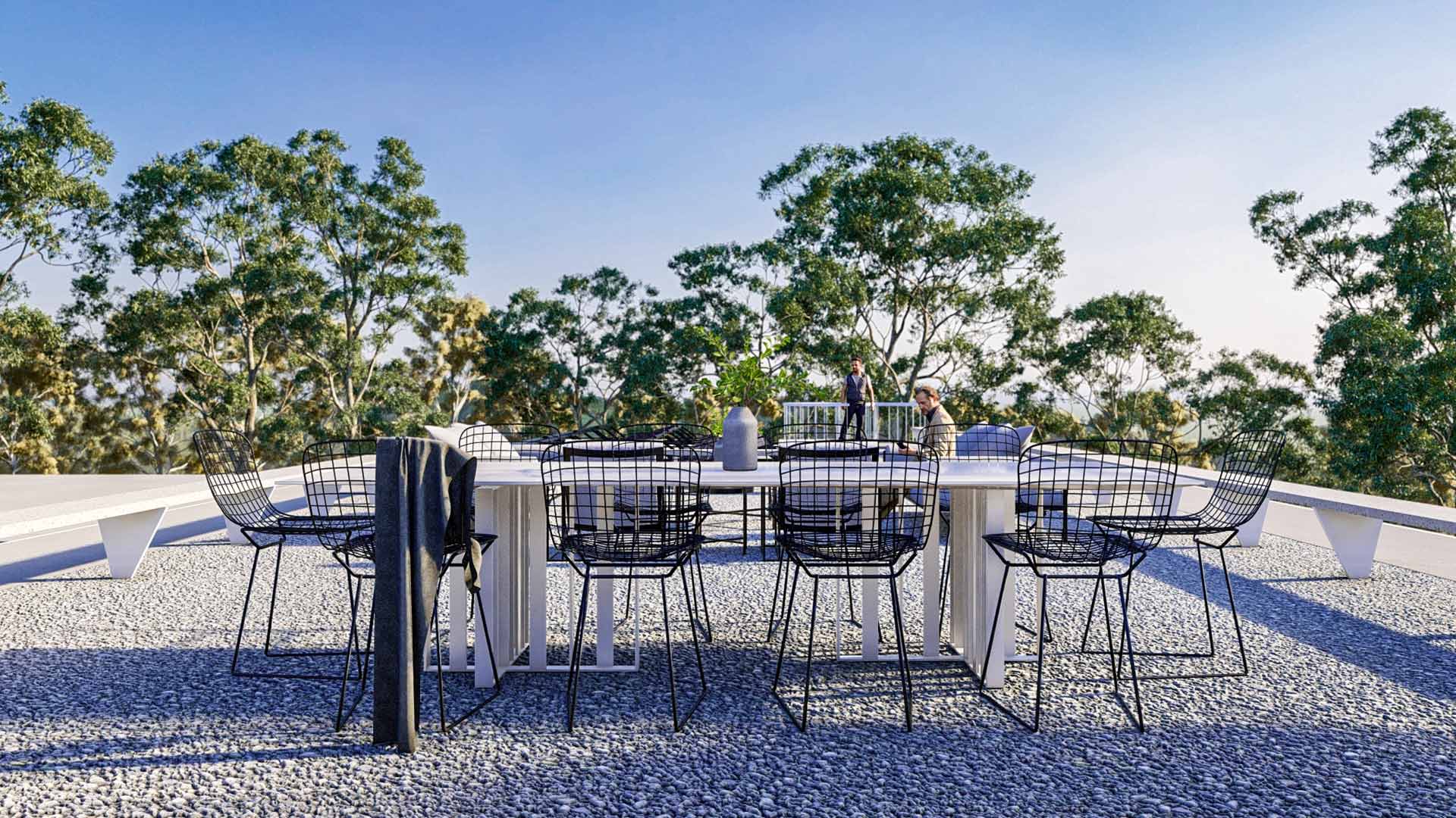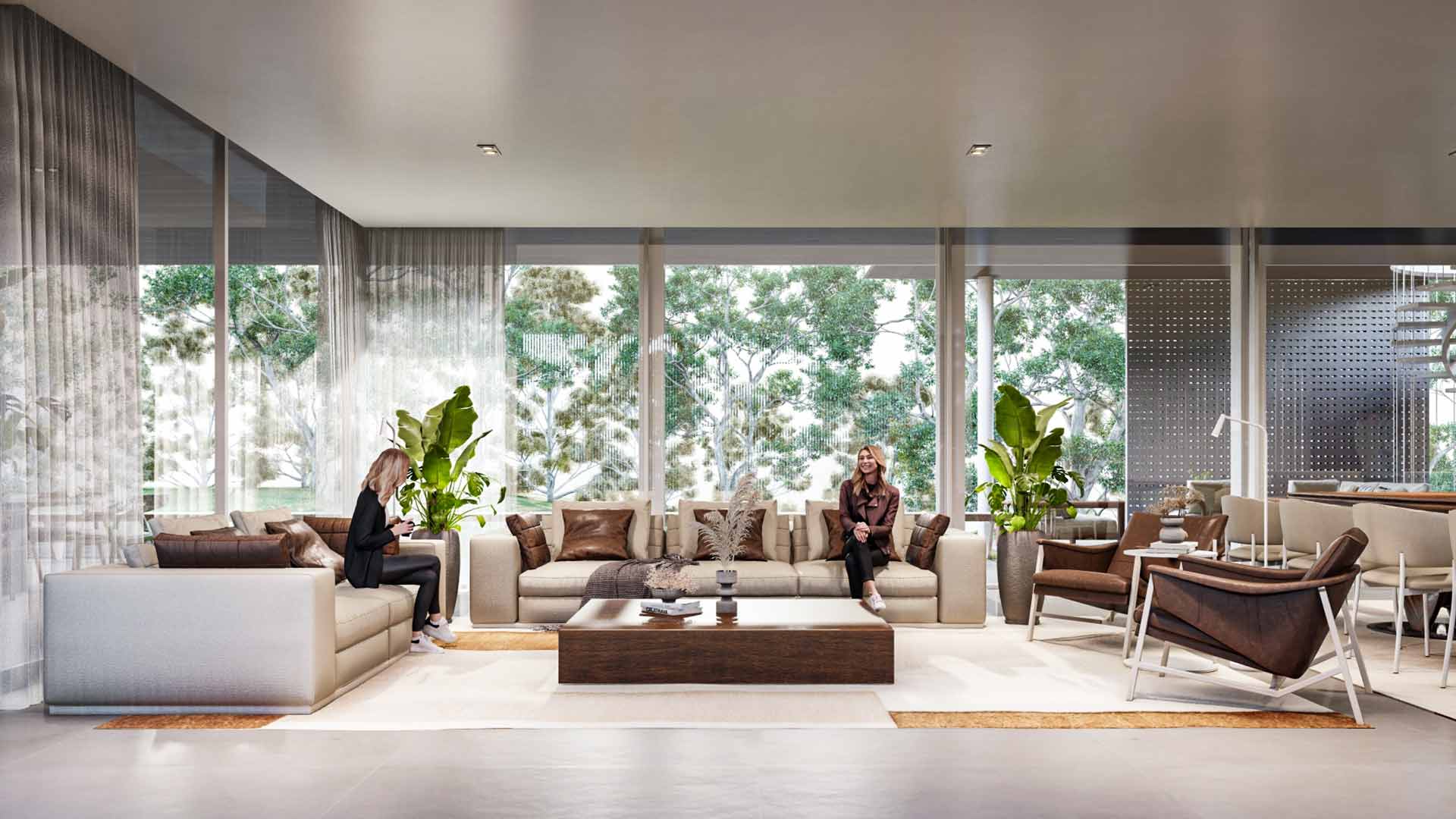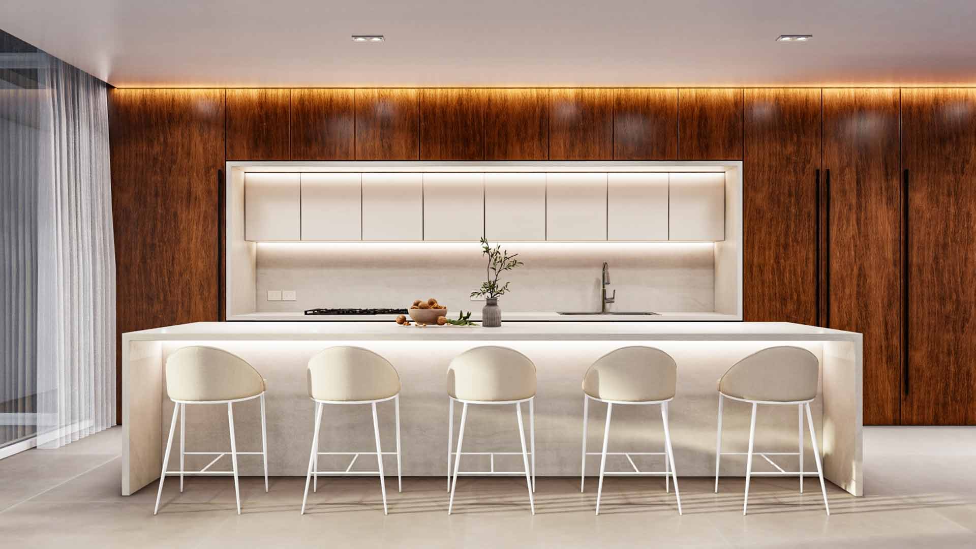 La materialidad apuesta por la paleta blanca y neutra, símbolo de la renovación familiar en su traslado a Santa Cruz, en contraste con la calidez de la madera y el verde intenso de la vegetación circundante. El resultado es un conjunto luminoso, elegante y armónico, que refleja la idea de un nuevo Aurora a través de la arquitectura.