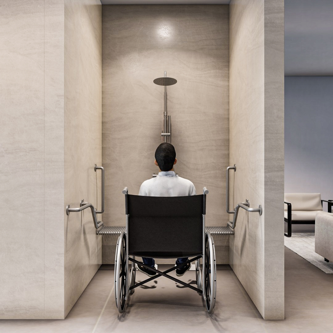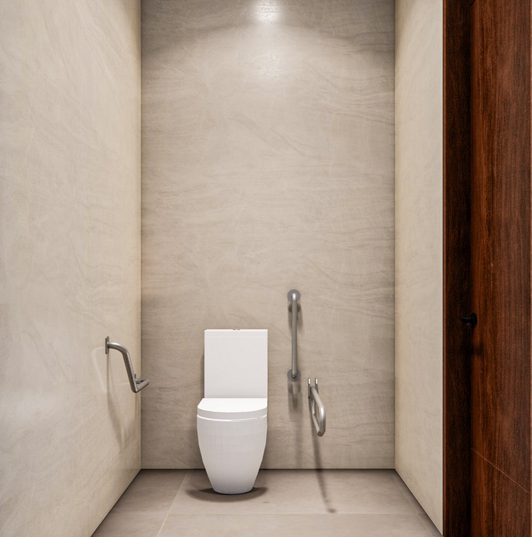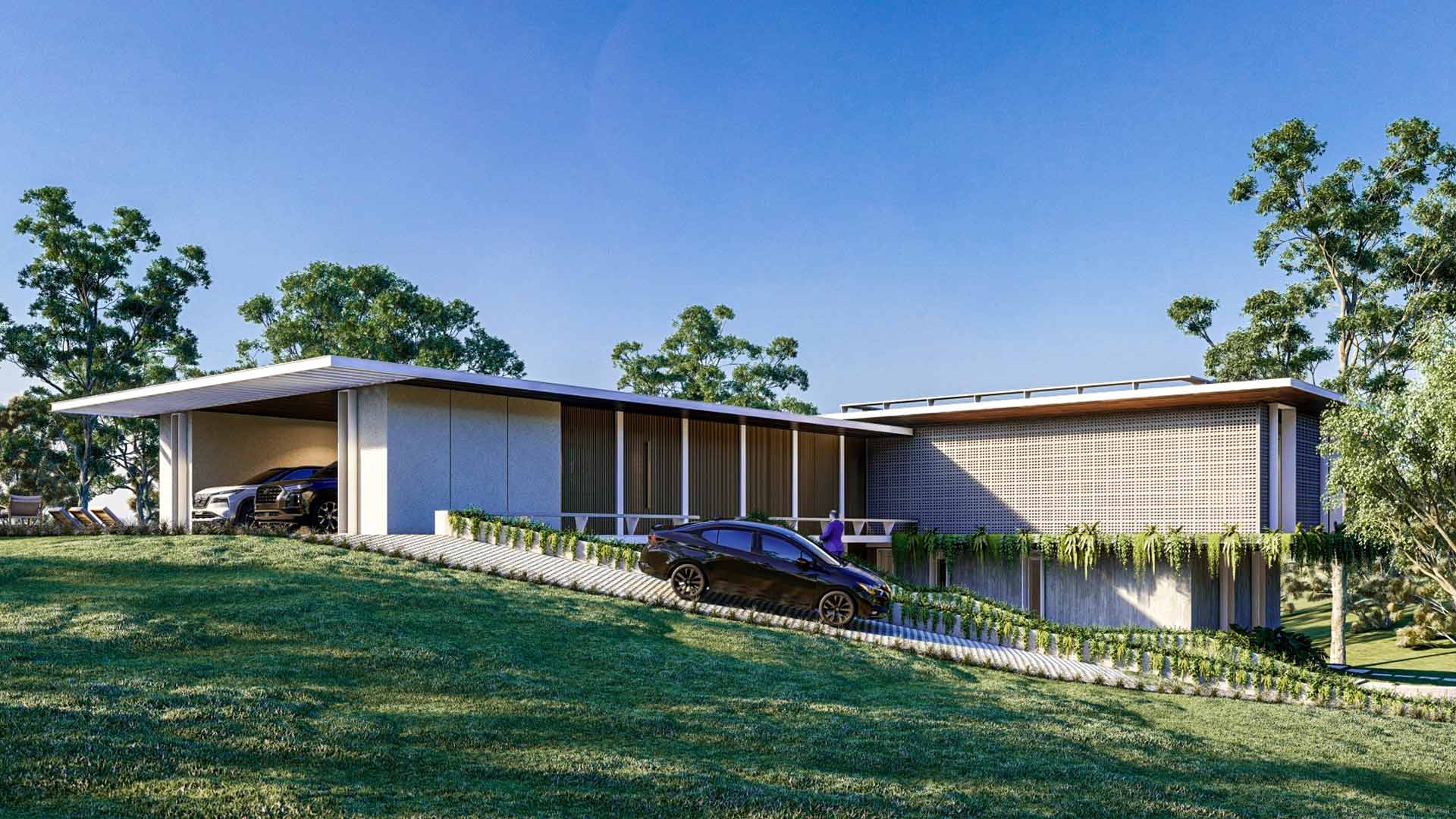 La Casa Aurora es una residencia contemporánea en Santa Cruz diseñada con un enfoque inclusivo, adaptando la arquitectura a la topografía del terreno para garantizar accesibilidad total. La premisa central del proyecto fue crear un recorrido fluido para su propietario en silla de ruedas: la rampa vehicular desemboca directamente en el nivel principal, donde se distribuyen todas las áreas sociales y privadas, incluyendo la suite principal, sin necesidad de subir escaleras.