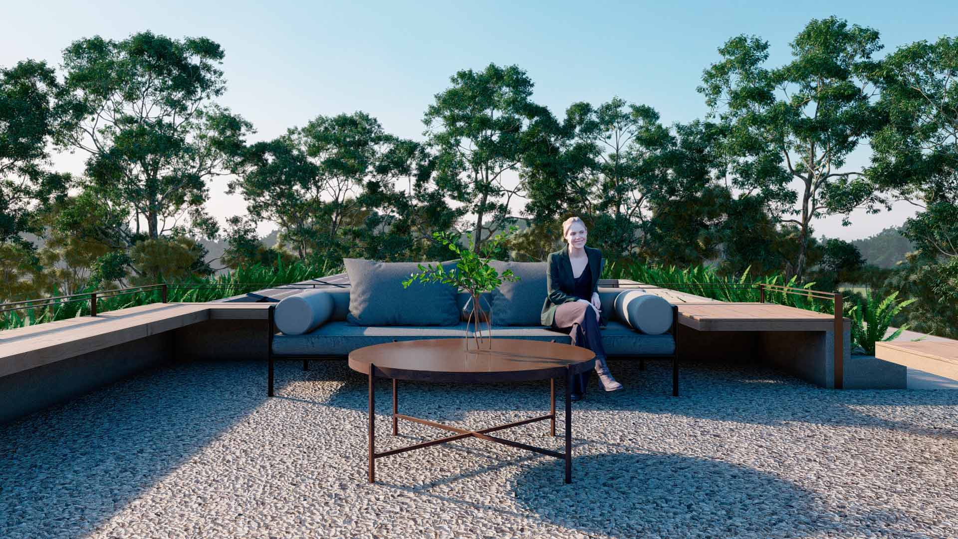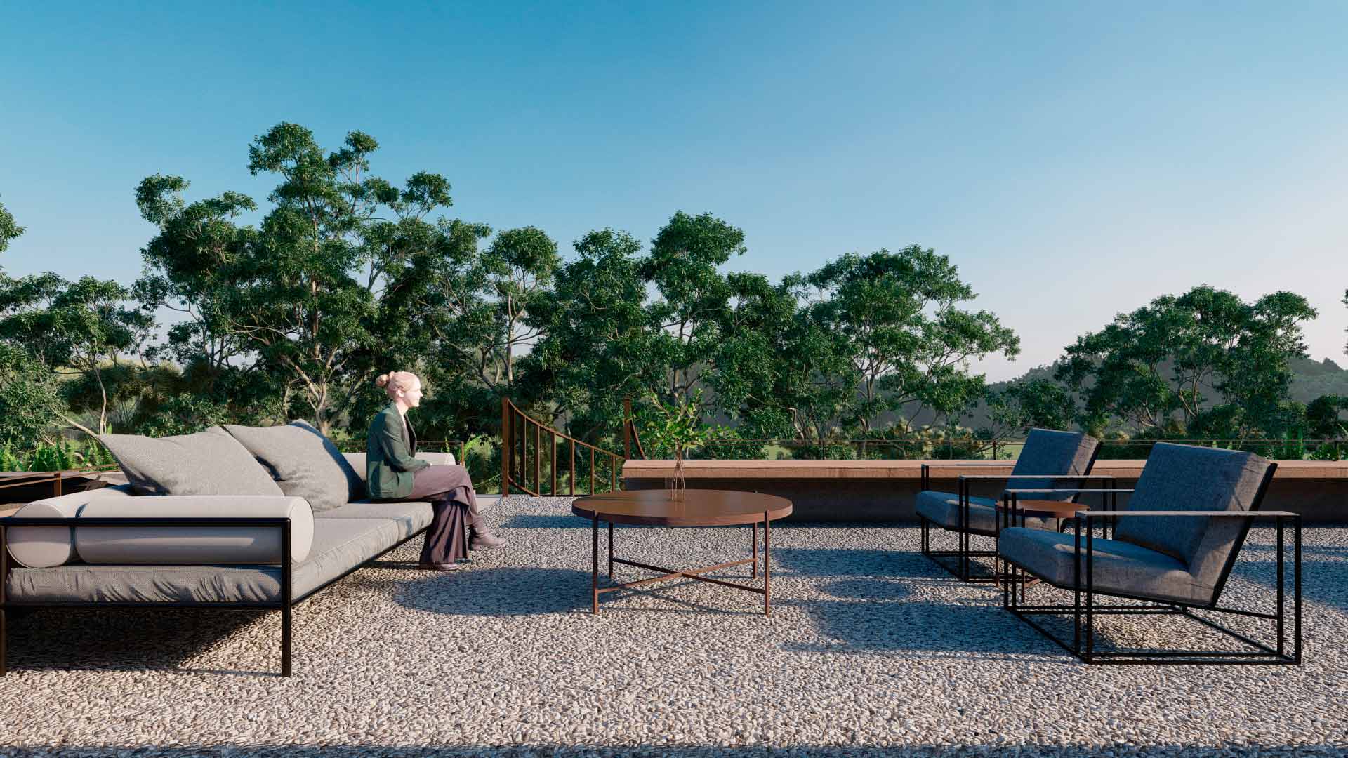 La Casa Terma combina materiales nobles como piedra, madera, vidrio y metal, logrando un equilibrio entre solidez, ligereza y contemporaneidad. Cada decisión de diseño responde tanto a criterios estéticos como funcionales: confort térmico, eficiencia en el uso del espacio y relación directa con el paisaje.