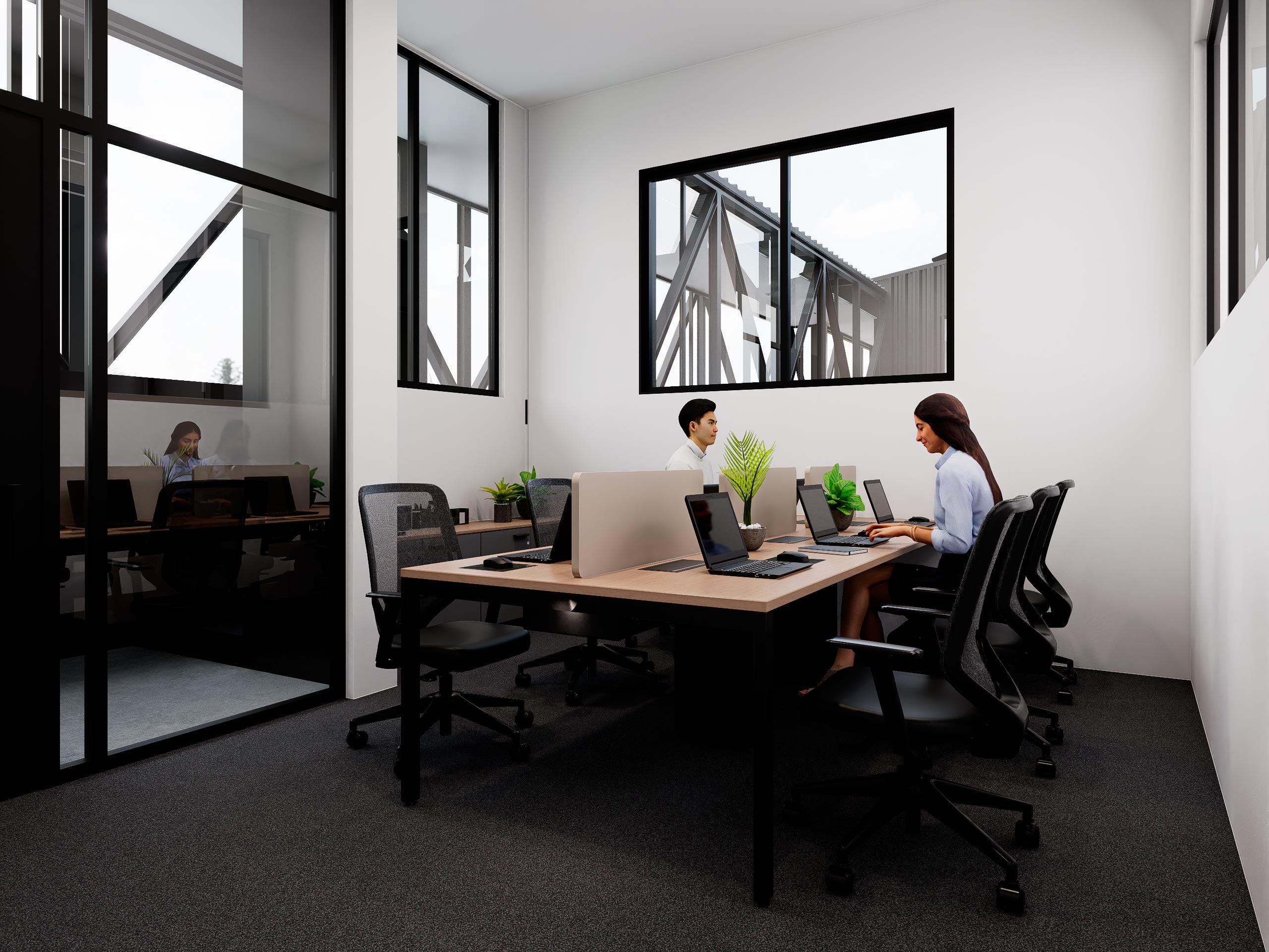 En el interior, las oficinas industriales priorizan la eficiencia operativa: espacios abiertos que fomentan la colaboración, transparencia en la supervisión de procesos y detalles de confort que equilibran la dureza fabril con un ambiente corporativo moderno.